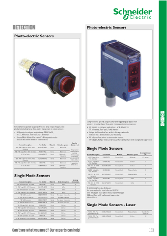 Comprehensive general purpose offer and large range of application products including: laser, fibre-optic, transparent or colour sensors.