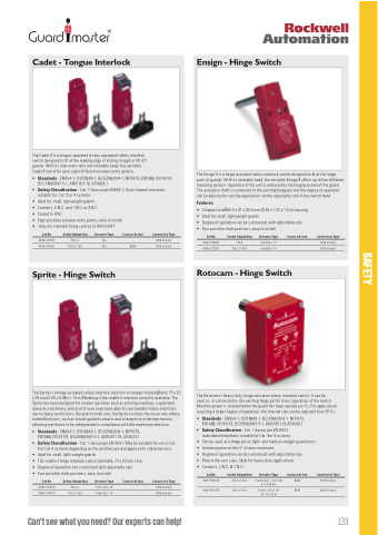 • Standards - EN954-1, ISO13849-1, IEC/EN60204-1, NFPA79, EN1088, ISO14119, IEC/EN60947-5-1, ANSI B11.19,AS4024.1