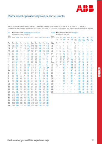 The currents given below concern standard three-phase four-pole cage motors (1500 r.p.m. at 50 Hz 1800 r.p.m. at 60 Hz).