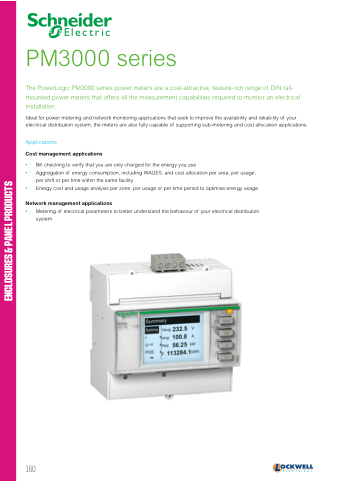 The PowerLogic PM3000 series power meters are a cost-attractive, feature-rich range of DIN rail- mounted power meters that offers all the measurement capabilities required to monitor an electrical installation.