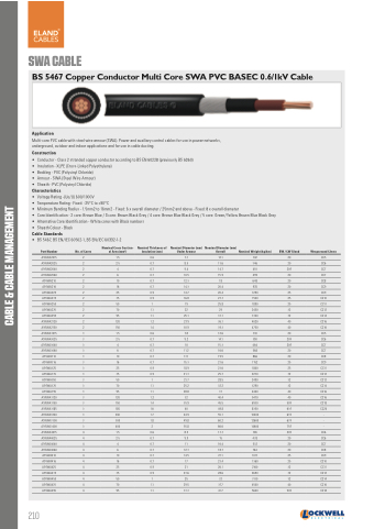 Multi-core PVC cable with steel wire armour (SWA). Power and auxiliary control cables for use in power networks, underground, outdoor and indoor applications and for use in cable ducting.