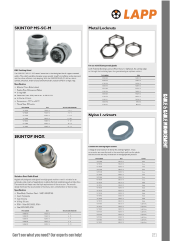 A range of nylon locknuts to fasten the Skintop® glands. These accessories are manufactured to the same high quality as the glands and ensure fast and easy installation of the appropriate products.