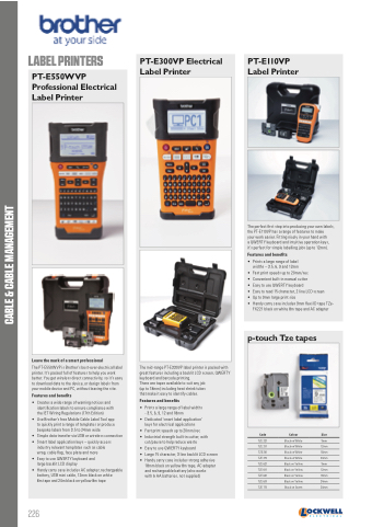 • Use Brother’s free Mobile Cable Label Tool app to quickly print a range of templates or produce bespoke labels from 3.5 to 24mm wide