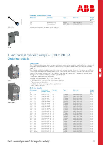 TF42 thermal overload relays – 0.10 to 38.0 A