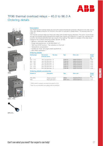 TF96 thermal overload relays – 40.0 to 96.0 A