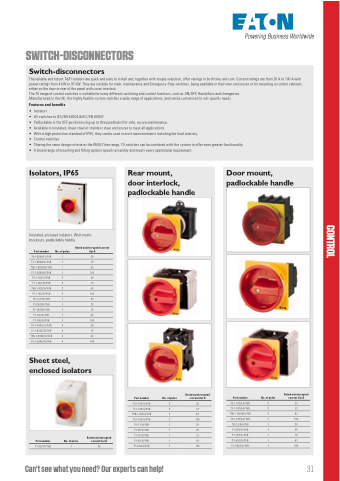 • All switches to IEC/EN 60204 & IEC/EN 60947.