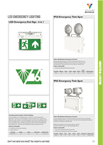Venture Lighting Emergency Twin Spot luminaires provide 3 hour non- maintained emergency lighting when you need it most. The twin spots are adjustable for optimal utilisation of the efficient 128 LPW LEDs.