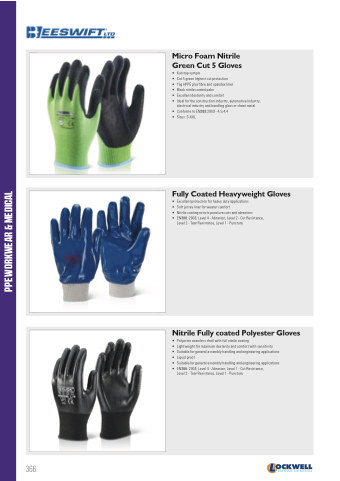 • EN388: 2003, Level 4 - Abrasion, Level 1 - Cut Resistance, Level 2 - Tear Resistance, Level 1 - Puncture