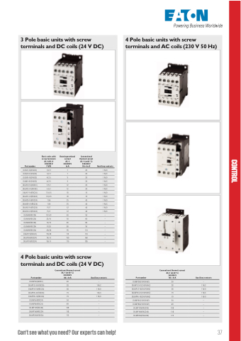 4 Pole basic units with screw terminals and AC coils (230 V 50 Hz)