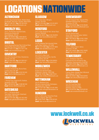 Unit 2a, Stag Industrial Estate, Atlantic Street, Broadheath, Altrincham, Cheshire. WA14 5DW Tel: 0161 928 7017 Fax: 0161 941 6233 Email: sales.altricham@lockwell.co.uk