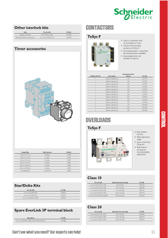 circuit breakers or fuses Commonfrontmounted auxiliaries to TeSys D Serviceable product - spare fixed and moving contacts available Special application coils available on request